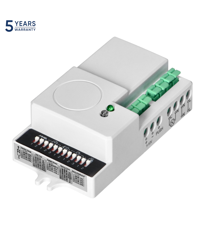 Puterea maximă de comutare este de 1200W și permite conectarea diverselor dispozitive de iluminat sau LED cu o putere totală de 600W. Senzorul funcționează la o tensiune nominală de 230V AC și o frecvență de 50Hz, iar consumul său redus de energie de doar 0,9W îl face o soluție eficientă din punct de vedere energetic. Senzorul funcționează într-un interval de temperatură foarte larg, de la -20°C la +50°C.